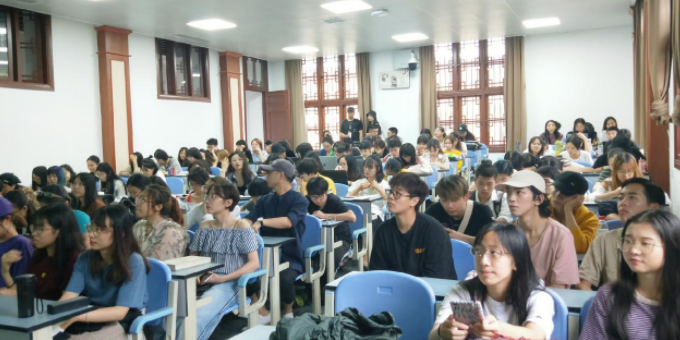 From July 9 to 10, 2018, Feng Sansan, China's top ten designers, founder of FENGSANSAN studio and design director of Beijing Baixue and Beibei children's clothing, was invited to our school to give a series of lectures entitled "Creative Road of Fashion Design" in Wangjiang Campus. This event was arranged during the "Practice and International Course Week" of Sichuan University. Zhao Wu, an associate professor of clothing and apparel design in our college, presided over the event and delivered a welcome speech. Teachers of textile and apparel design and more than 100 students of this major listened to the wonderful lecture.