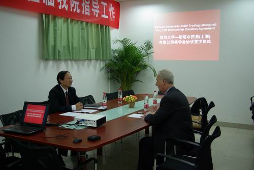 何院长代表学院和生物质与皮革工程系对到访客人表示欢迎,对斯塔尔公司继续在皮革系设立奖学金表示感谢。他向客人介绍了轻纺与食品学院、生物质与皮革工程系的办学情况,并着重介绍了轻化工程专业三个方向在人才培养和学科建设方面所取得的成绩。何院长高度评价双方在人才培养方面的合作局面,希望能和斯塔尔公司在人才培养、学科建设、科学研究方面进一步加强合作与交流。随后,何院长与来访客人续签了四川大学—斯塔尔贸易(上海)有限公司奖学金协议。