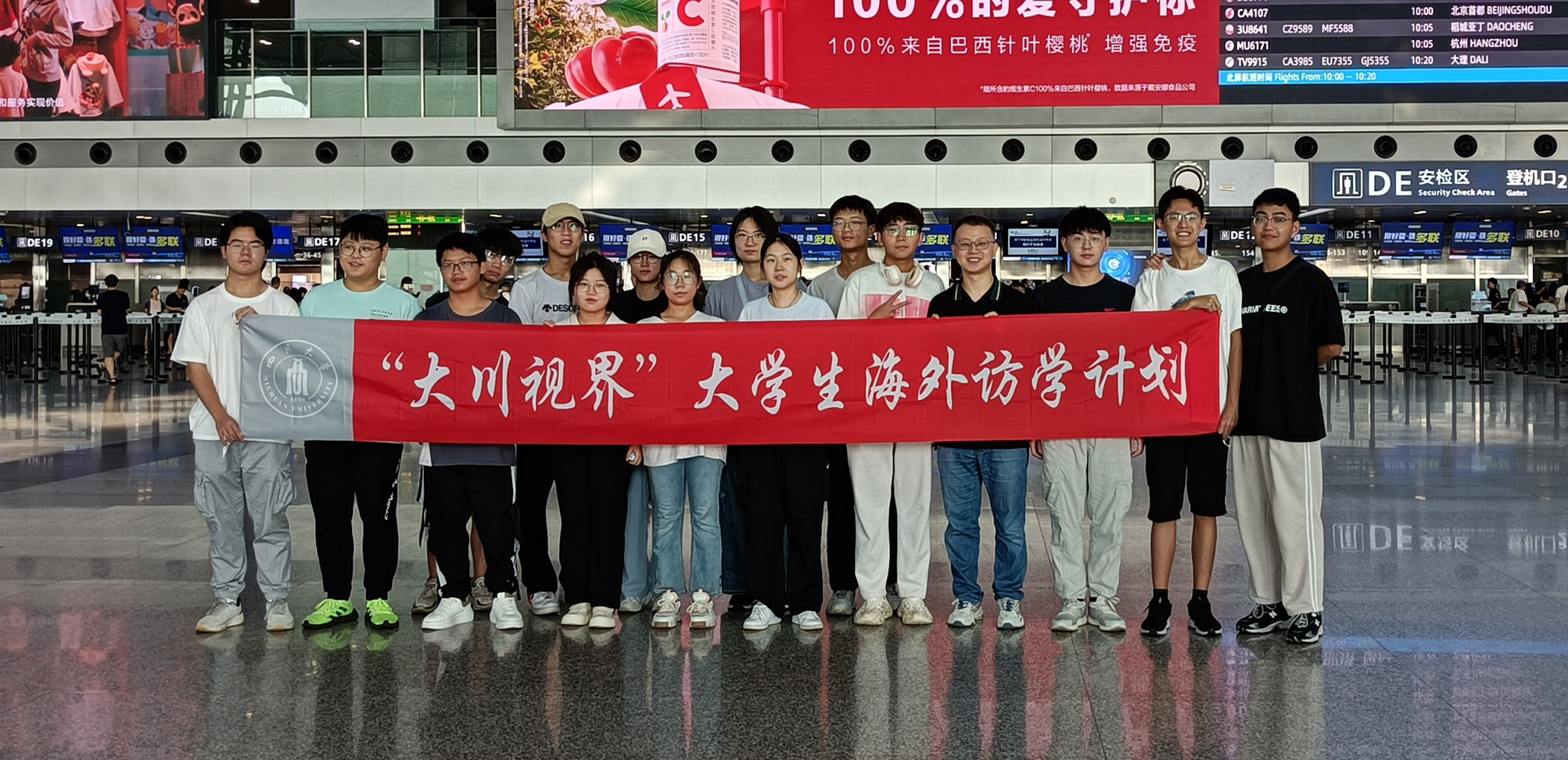 余跃老师与15名同学在成都双流国际机场出行前合影