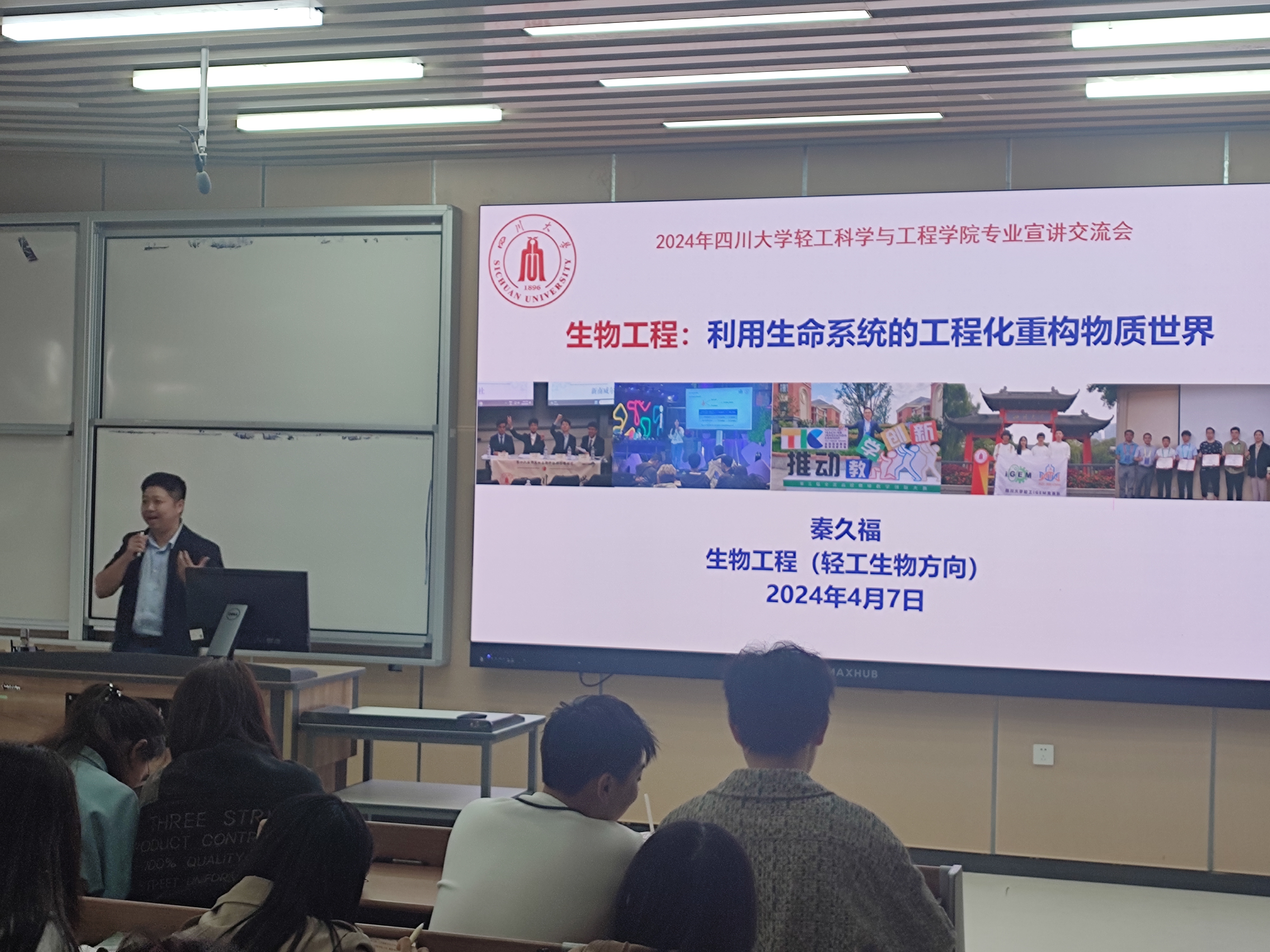 为引导2023级本科生深入了解学院专业与就业前景,明确规划专业选择与学习目标,充分发掘自身专业潜质与特长,学院于2024年4月7日下午在江安校区综合楼C307召开2024年工科专场专业宣讲会。出席本次宣讲会的有学院党委副书记冯国涛副教授、生物质与皮革工程系副系主任程海明教授、食品工程系副系主任曾维才副教授、生物工程专业教研室主任秦久福特聘研究员、生物质科学与工程创新班金垚副教授、各专业教师代表以及2023级全体工科同学。会议由学院党委副书记冯国涛副教授主持。