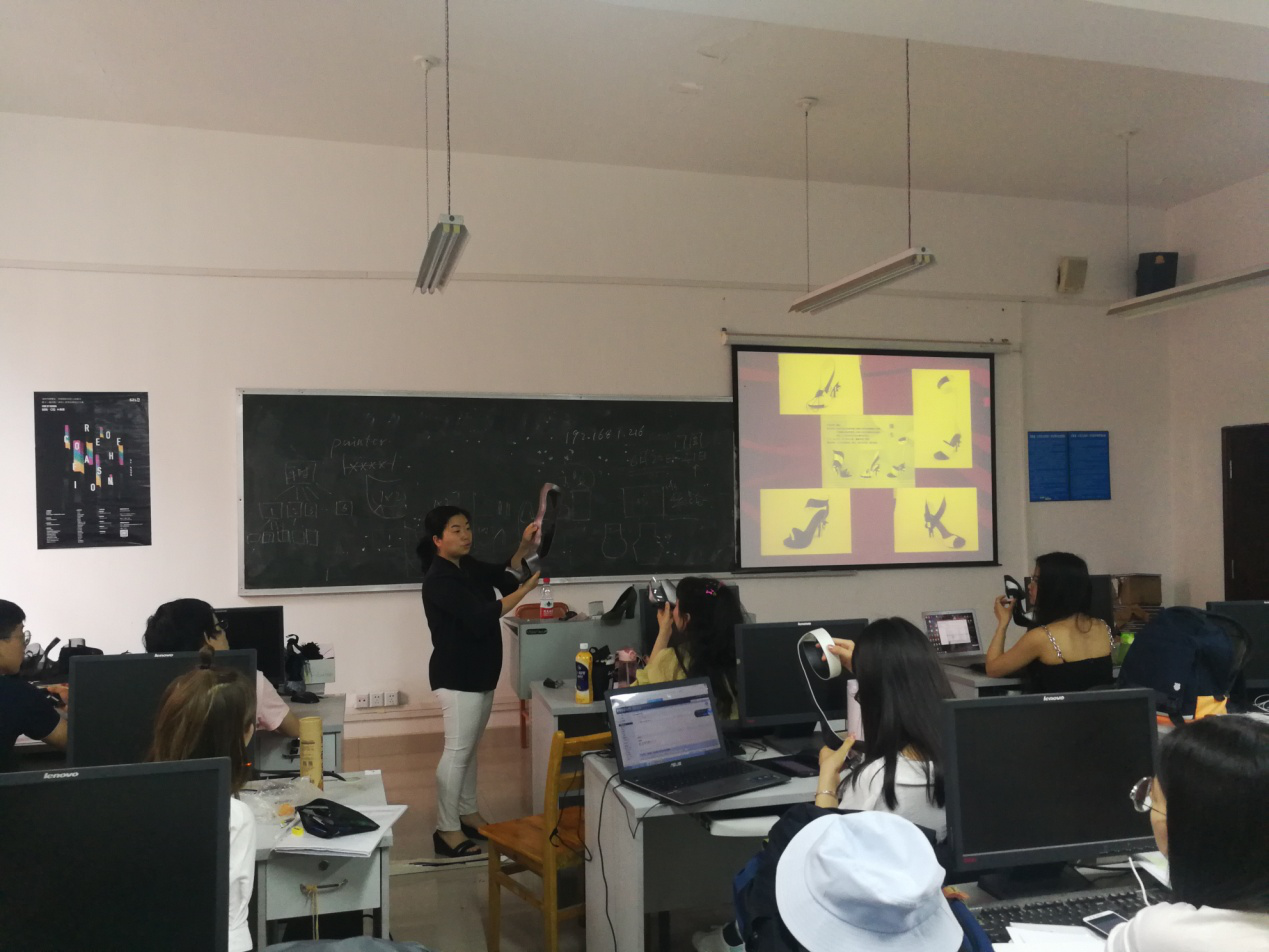 本次活动在纺工附楼203教室举行,观摩学习对象为姚云鹤老师及其承担的《专业综合实验(鞋类设计部分)》课堂教学。姚老师从构思、选材、实穿性等方面讲解了鞋类设计与制作的原则,介绍了3D打印、粘土、流苏等先进技术与材料的应用技巧,并结合往届学生作品的创意与实例,与学生共同分析和探讨了设计与制作作品中成败的关键。