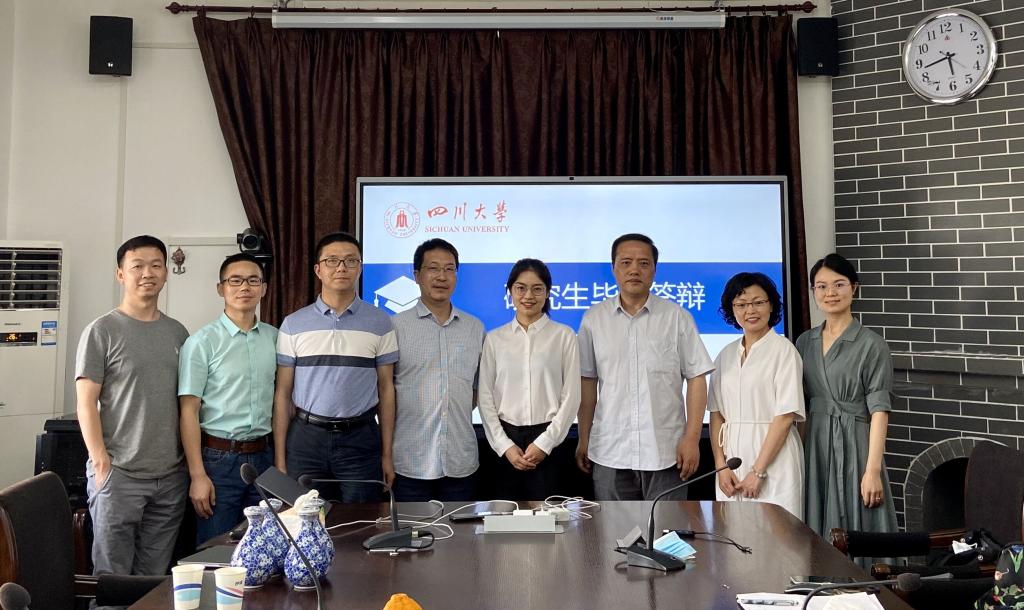 新冠肺炎疫情的影响,毕业生的在校时间受到压缩,但是同学们通过线上平台与导师积极沟通,高鸿教授对同学们论文的撰写、修改和定稿进行了严格而耐心的指导。答辩过程按照四川大学硕士论文答辩程序进行,参与答辩的同学在经过论文反复修订和预答辩之后显得更为自信从容、游刃有余。同学们围绕毕业论文选题背景和目的意义、研究思路和方法、实验结果分析与讨论等方面进行了详细的汇报展示,PPT美观简洁,论述条理清晰,谈吐落落大方。此外,由于课题组非毕业年级尚未返校,为了让低年级同学能更好的参与其中,课题组采用视频会议现场直播的方式,让身在异地的同学“身临其境”,从而更为直观的感受毕业答辩氛围,了解毕业答辩流程并学习答辩技巧。
