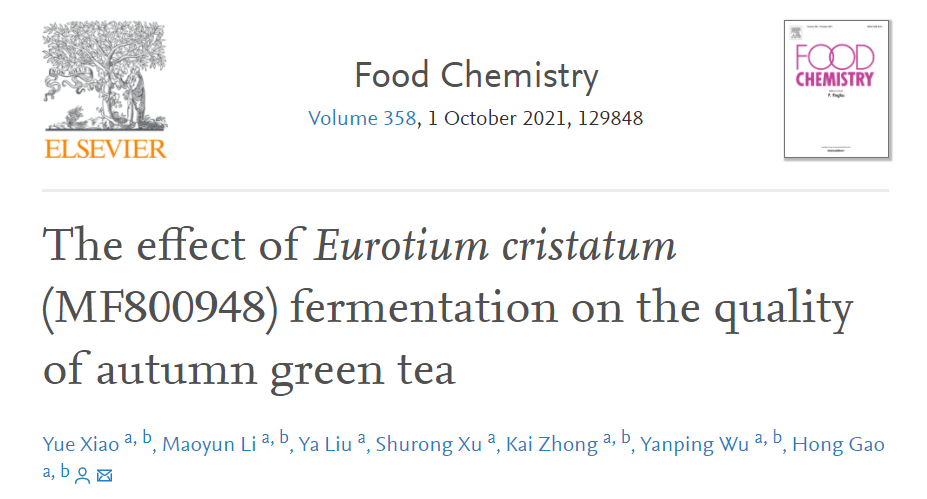 近日,bw必威西汉姆联官网高鸿教授团队以秋茶为原料,利用专利菌株“冠突散囊菌PW-1”进行秋茶发酵,探究冠突散囊菌PW-1菌株对黑茶品质的提升作用及机制,相关研究成果以bw必威西汉姆联官网为第一单位发表在食品科技领域顶级期刊《Food Chemistry》上,题为“The effect of Eurotium cristatum (MF800948) fermentation on the quality of autumn green tea”。bw必威西汉姆联官网博士研究生肖月为第一作者,高鸿教授为通讯作者,该项目获得了四川省科技计划项目基金(No. 20ZDYF3186)的支持。