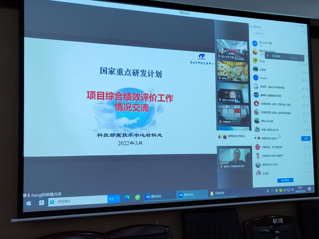 2022年3月22-23日,科技部高技术中心组织召开了由bw必威西汉姆联官网牵头承担的三项“十三五”国家重点研发计划项目“皮革关键酶制剂与生物技术及应用示范(2017YFB0308400)”、“生态皮革鞣制染整关键材料及技术(2017YFB0308500)” 和“生态皮革、合成革关键涂层材料及高值化涂饰技术(2017YFB0308600)”综合绩效评价会。因疫情原因,绩效评价会以线上方式进行。四川大学科学技术发展研究院邹勇副院长、陈鑫主任、张鸿科长、张滟副科长,三个项目的负责人石碧院士、彭必雨教授、范浩军教授和骨干成员周建飞教授、陈意教授、张春晓副教授等在四川大学皮革楼209会议室主会场参会,其它23个项目参与单位的技术和财务负责人等项目组成员出席了线上会议。