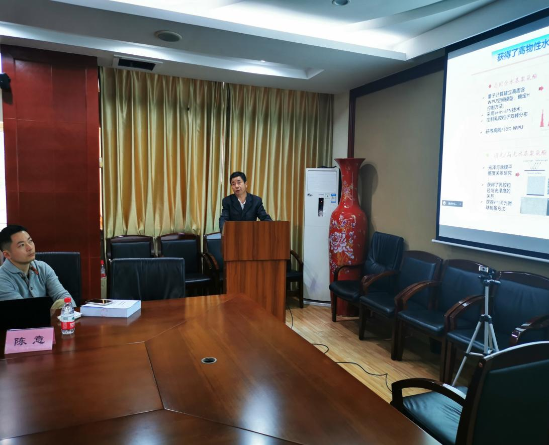 范浩军教授作 “生态皮革、合成革关键涂层材料及高值化涂饰技术”项目汇报展示
