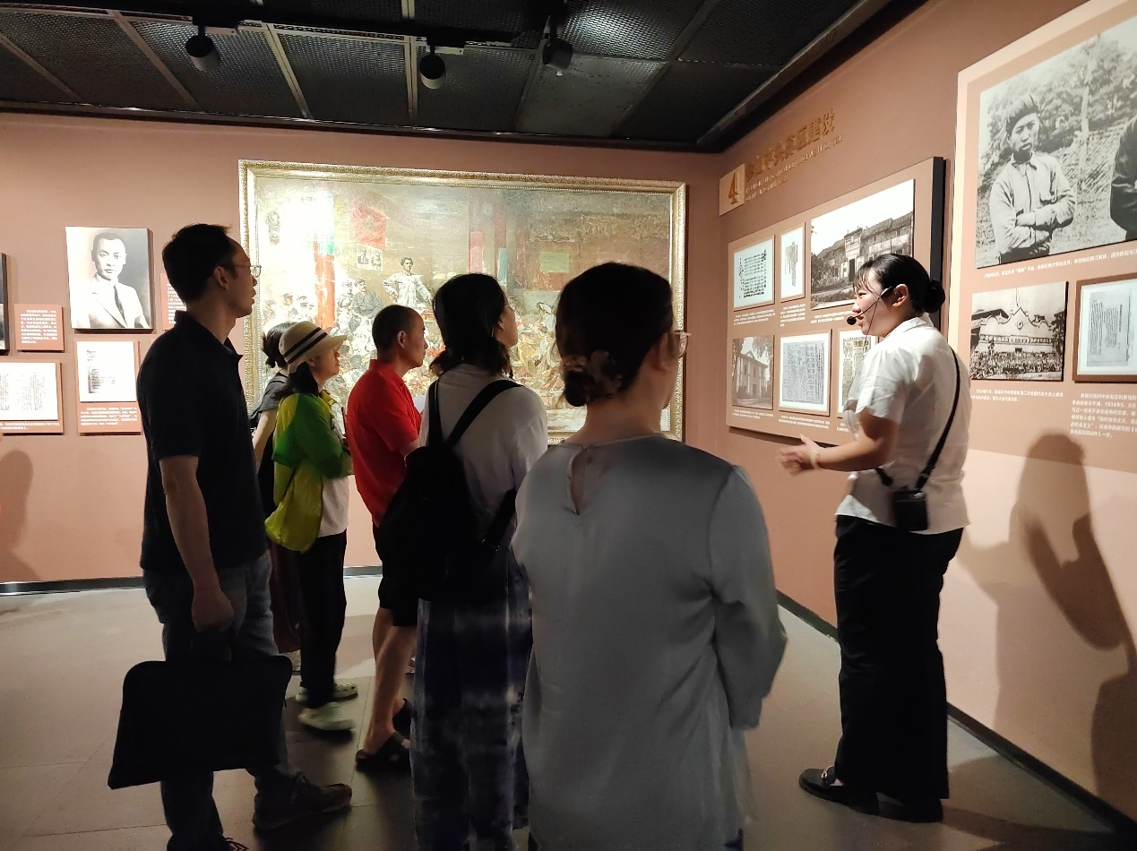 接着,同志们来到了陈毅生平事迹陈列馆。馆内展示的内容主要由七个部分组成,包括漫漫求索追求真理、参与创建人民军队、受命整编革命铁军、挥师逐鹿华东中原、主政上海恢复建设、殚精竭虑领衔外交以及坚守初心风范永存。通过观看元帅使用过的实物、照片以及影像资料,同志们深入了解了陈毅元帅为党奉献一生的光荣事迹。