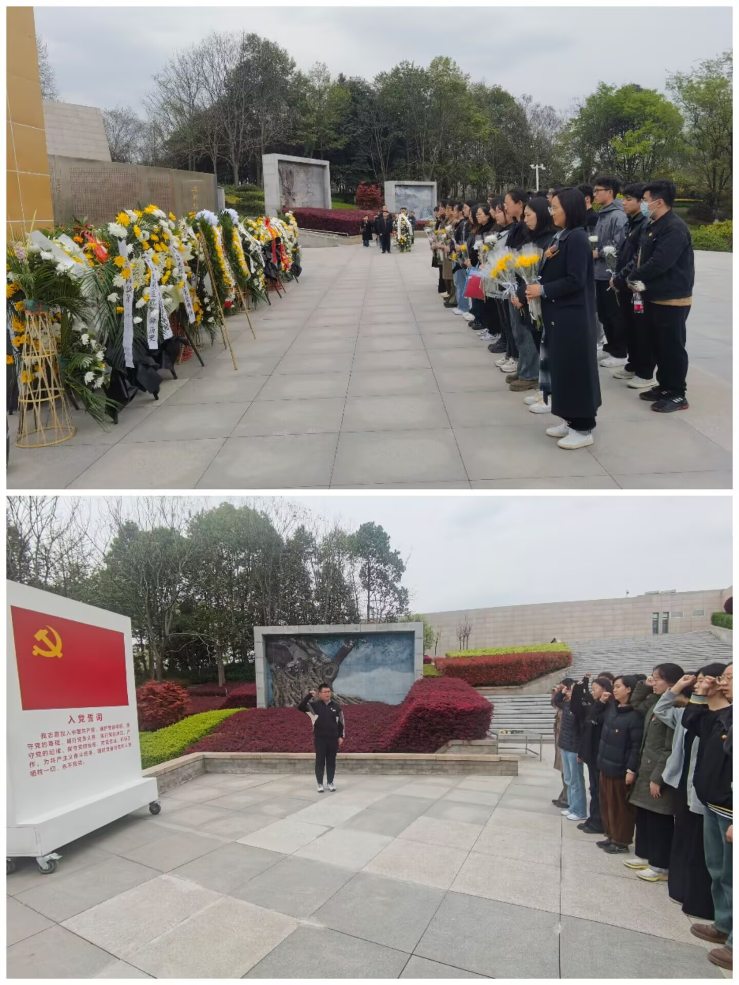 鞠躬礼毕,党员们在纪念碑前整齐排列,合影留念,让镜头定格这庄重时刻,铭记对先烈的敬仰。随后,面对鲜艳党旗,全体党员重温入党宣誓词。誓言铿锵,在陵园久久回荡,唤醒了内心的初心使命,激励大家在新时代坚守信仰、勇毅前行。