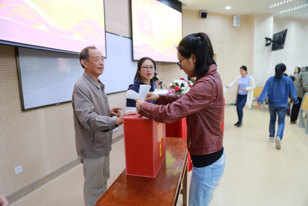 学生支部小组讨论 大会的第六项议程是举行换届选举。大会举手表决并通过了《中国共产党四川大学轻纺与食品学院党委委员和纪委委员换届选举办法》;举手表决并通过了总监票人、监票人名单,宣布了工作人员名单。廖隆理教授作为总监票人主持了选举大会。总监票人首先向大会报告了正式党员实际到会超过应到会人数80%及符合选举办法并可以进行选举的结果,监票人姚开教授和陈衍夏教授对票箱进行了展示,工作人员随后发放选票,总监票人对选票及其填写规则进行了说明,在工作人员投票后组织进行有序投票。投票结束后,总监票人首先组织对选票的发放、回收情况进行统计,待认定选举有效后宣布进行计票。