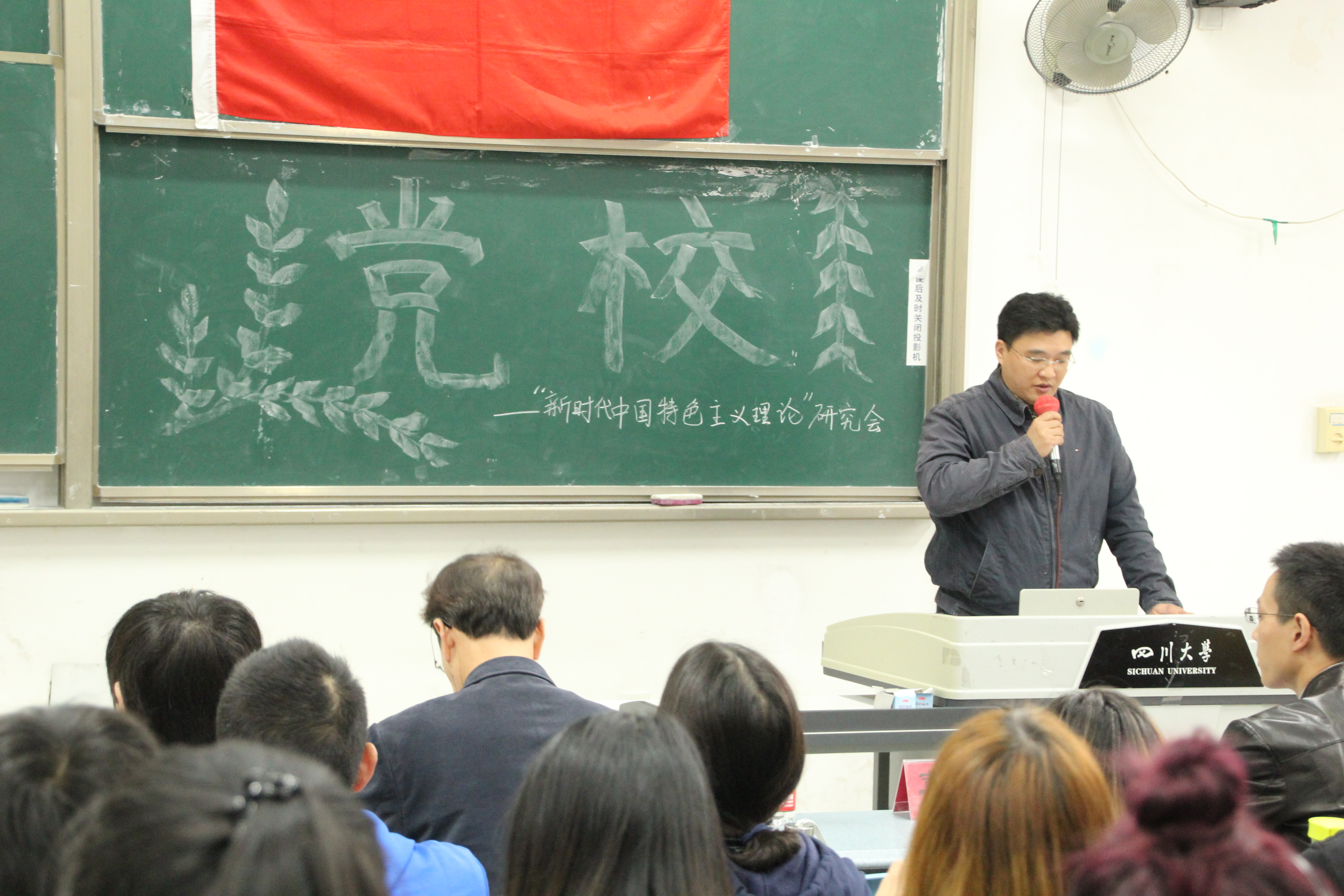 2018年10月20日上午9:00,由四川大学轻纺与食品学院、化学工程学院、建筑与环境学院、艺术学院联办的第145期党校学生党员发展对象培训班,开班仪式暨第一讲在江安校区第一教学楼C座103教室顺利举行。四川大学党校兼职教授汪朝清、轻纺与食品学院党委书记刘晓虎、化学工程学院党委副书记姜利寒、建筑与环境学院党委副书记孙伯雷、轻纺与食品学院党委副书记冯国涛出席本次活动。开班仪式由轻纺与食品学院党委副书记冯国涛主持。