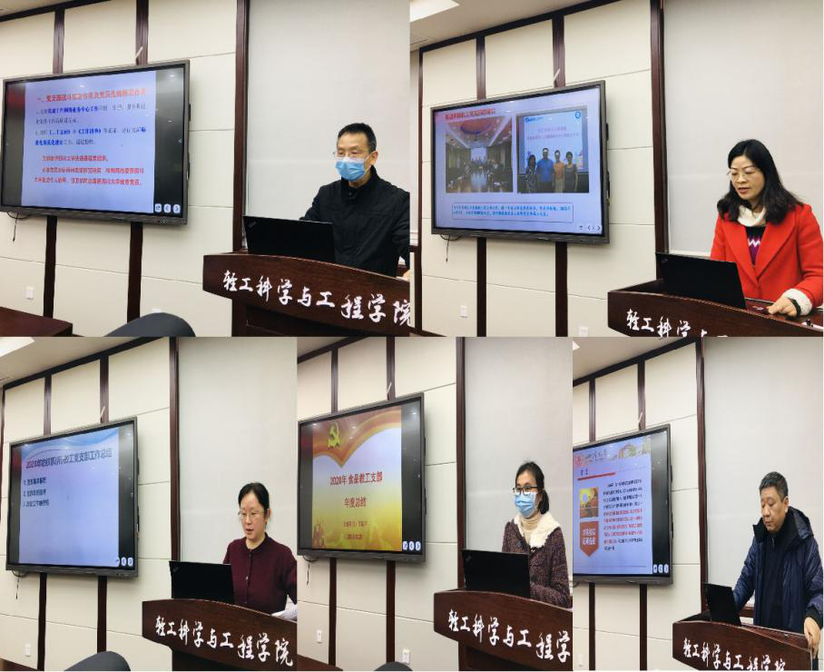 皮革系教工党支部李正军书记、离退休教工党支部李慧书记、纺织服装教工党支部顾迎春书记、食品系教工党支部组织委员董怡、公共服务教工党支部田彬书记、分别从支部情况介绍、年度工作回顾、支部特色工作开展、下一步工作计划与展望等方面进行总结汇报。