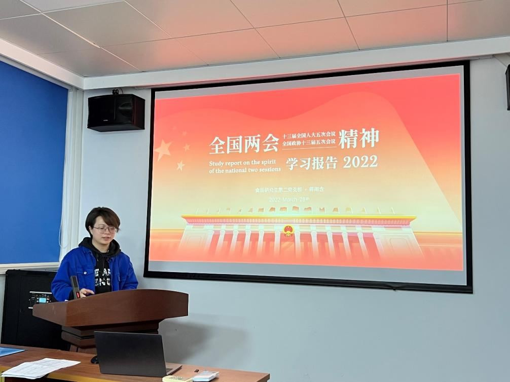 全国两会于今年3月正式落下帷幕,为了学习宣传贯彻两会精神,2022328日,bw必威西汉姆联官网食品研究生第二党支部在纺工楼A302会议室召开了关于全国两会精神分享的学习报告会,报告会由支部书记杜沁岭同志主持,支部党员蒋雨含同志做主要分享。