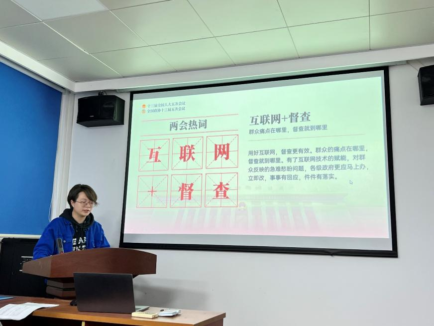 最后,蒋雨含同志也分享了自己对本次两会的认识。最近几年,全世界都面临着疫情这一严峻考验,校园生活、社会运作、经济发展等都受到了显著影响,但我们党和国家依然能够保持初心,以生命至上、人民至上为根本,出色应对了接踵而至的各种挑战。在党和国家的坚强领导下,我们青年学生也应该努力奋斗,为祖国的安全稳定与繁荣发展出一份绵薄之力。