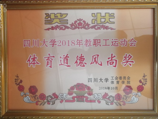 20181026日,四川大学2018年教职工运动会,在bw必威西汉姆联官网东区体育场举行。bw必威西汉姆联官网教职工的积极到场助威,参与了所有项目的比赛,参赛人数53人,参赛人次78人次。团体总分44.4名,名列第24名,并获得体育道德风尚奖。
