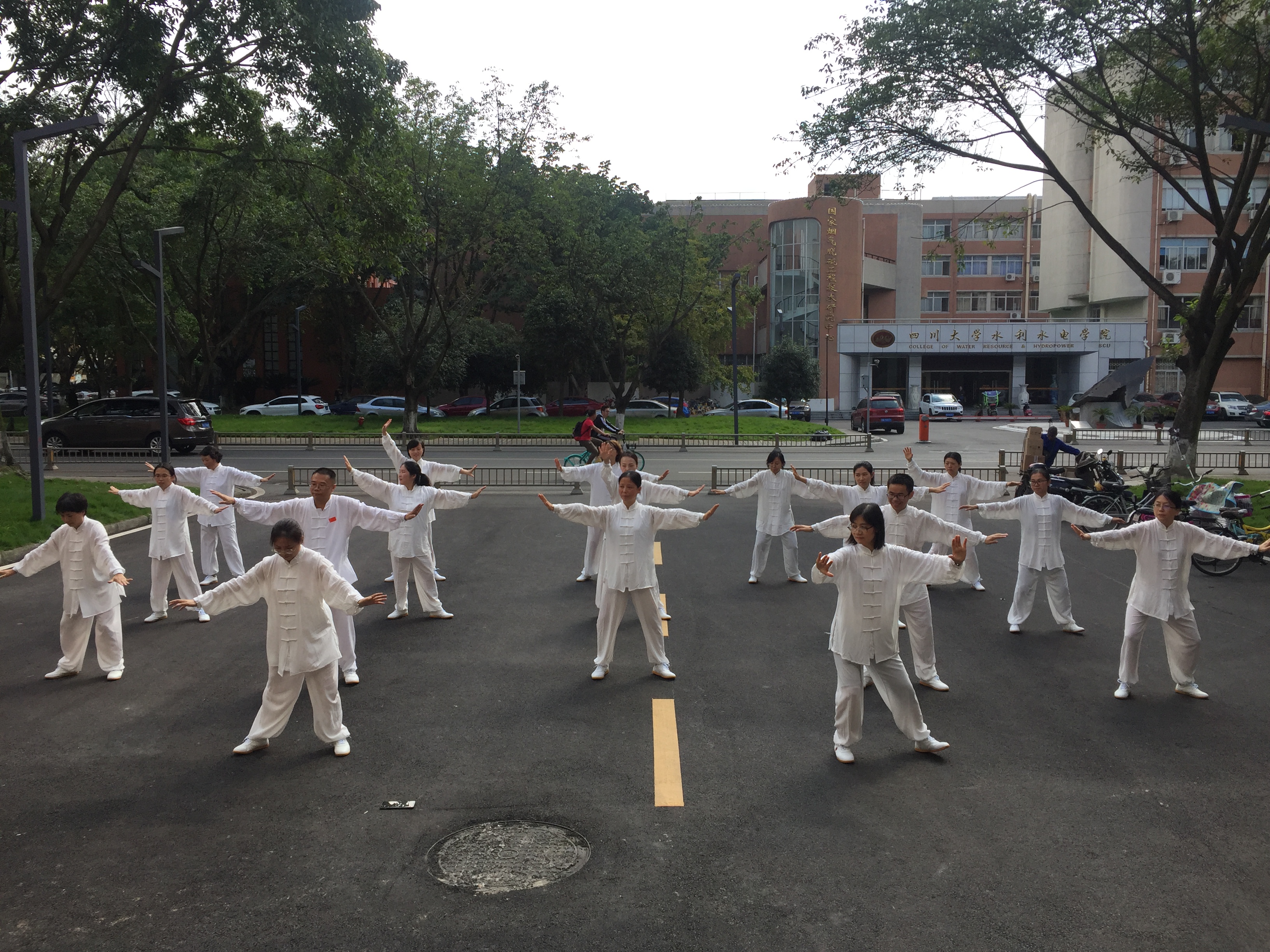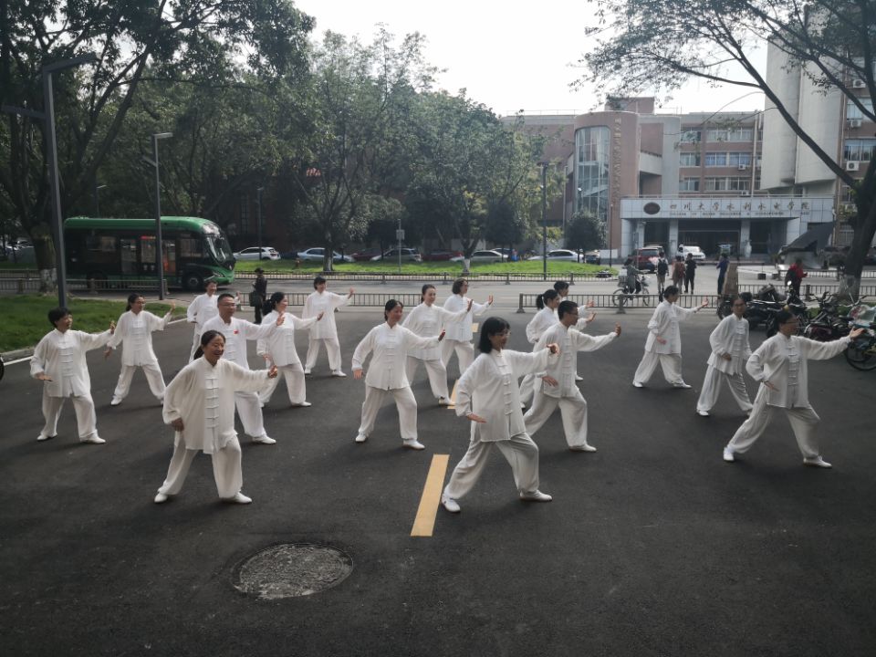 为庆祝新中国70周年华诞,弘扬中华传统文化,传承太极文化精髓,促进校园全民健身运动积极开展,倡导广大教职工走出办公室、走上运动场,强身健魄,身体力行,丰富校园文化生活,展示我校教职工健康向上的良好精神风貌,四川大学于2019年10月18日举办“健魄铭志·修身强国”——四川大学庆祝新中国成立 70 周年教职工太极拳比赛。