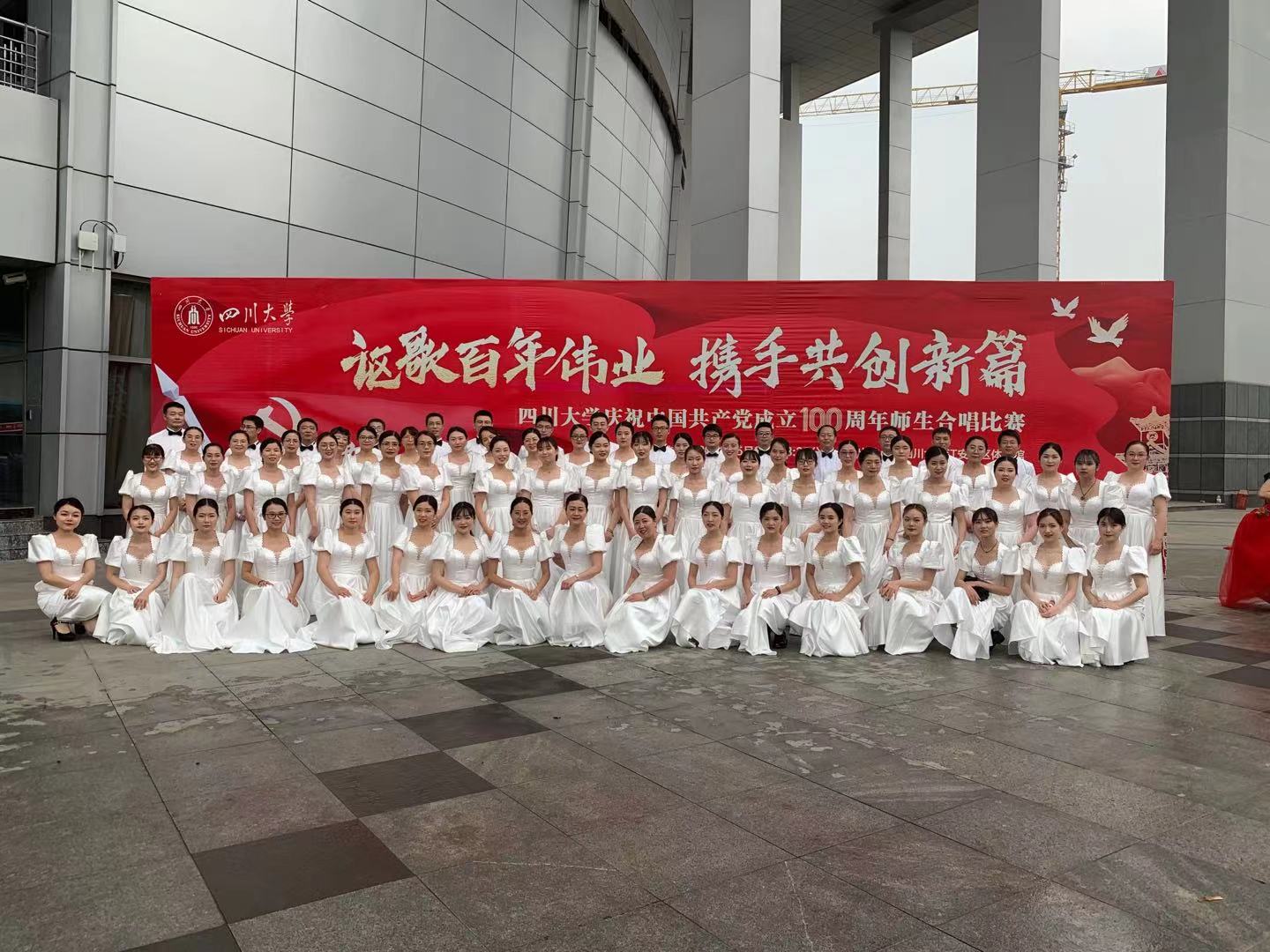 举办同庆中国共产党成立100周年之际,四川大学党政办、宣传部、学工部、校工会、校团委、教工部、研工部、艺术学院等部门共同举办“讴歌百年伟业 携手共创新篇”四川大学庆祝中国共产党成立100周年师生合唱比赛。旨在进一步激发广大师生爱党爱国的热情,增强党的意识,弘扬爱国主义精神,激励昂扬斗志,合唱比赛于2021年5月21日在四川大学江安体育馆隆重举行,全校共45个参赛单位和1个表演单位参加,bw必威西汉姆联官网师生70余名师生参加了此次比赛。