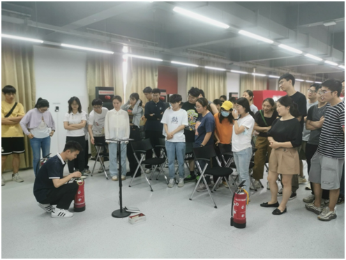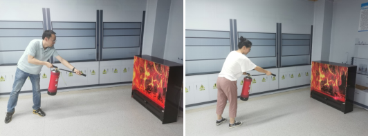 第二阶段为应急灭火演练。培训教师首先对灭火器的分类和使用对象进行了介绍,然后讲解了灭火器的使用方法,最后对使用灭火器灭火的步骤和注意事项进行了着重介绍。理论讲解后参训师生利用在模拟环境下完成了灭火演练。