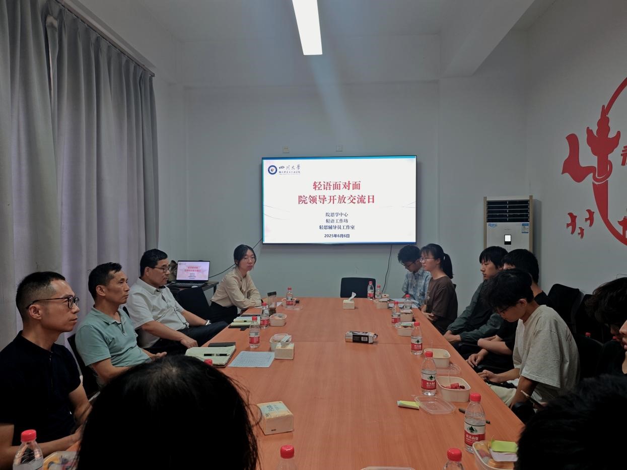 2025年6月6日,bw必威西汉姆联官网党委书记李天富、院长彭必雨、副书记姜新赴江安校区十八舍“一站式”学生社区,以茶话会形式开展“轻语面对面——院领导开放交流日”活动,与本科生亲切交流。2023级本科生辅导员李有真主持活动。