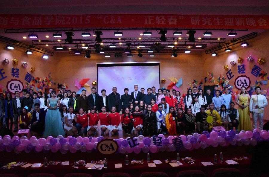 2015年11月29日19:00,轻纺与食品学院2015级“C&A·正轻春”研究生迎新晚会在四川大学文华活动中心二楼音乐厅隆重举行。本次晚会有幸邀请到轻纺与食品学院党委赵毅书记,院长何有节教授,党委副书记刘晓虎副教授,副院长肖凯老师,院党政办主任李慧老师,学生科科长冯国涛老师,院团委书记苏德强老师,学生工作组全体辅导员、部分专业老师,以及来自C&A西雅衣家(中国)商业有限公司的中国大区经理Stephane先生和C&A成都各大门店经理、陈列主管及陈列师。轻纺与食品学院2015级全体新生到场观看了晚会,场内座无虚席。
