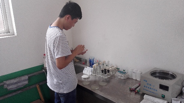 实习的前两周很快就过去了,8月2日,川大皮革系校友—2009级的罗龙学长与学生们取得了联系,进入技术阶段,开始新一轮的实习。与之前在厂房一线参与体力劳动不同的是,在这一周的实习中,主要在品管部参与成革质量的检测和化料物性的鉴定工作,下午则进入化料室,参与各式涂料、封底剂、光油等的调配工作。参与这部分工作,学生们受到了深深地触动,看着其他的技术员们忙碌地穿梭在眼花缭乱、只有编号的化料桶之间,配出一桶桶不同功能、物性的新化料,学生们不由得深感自己所学内容的匮乏和不足。罗学长了解到学生们的想法后说,要在皮革行业做出成绩,只参加一线的体力劳动是不行的,一定要在基层的技术工作中积累经验,在每日的配料打样中摸滚打爬,熟练自己的技能,丰富自己的见识才可以。听了学长的话,学生们不由得坚定了自己日后要努力学习,潜心参加基层工作的决心。