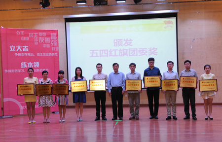 表彰大会在庄严的国歌声中拉开帷幕。校党委书记杨泉明教授在会上作重要讲话。他首先代表学校党委、行政和全校教职工,向受到表彰的先进集体、先进个人表示热烈祝贺,向与会人员及全校青年教工、青年学子、共青团员表示节日的问候。杨泉明书记在深情回顾了中国共产主义青年团的发展历史和四川大学青年学子的光荣革命传统后指出,近年来,学校各级团组织和广大青年在学校党委的领导下,继承和发扬五四光荣传统,积极践行科学发展观,奋力创先争优,深入学习习总书记五四重要讲话精神,大力弘扬和践行社会主义核心价值观,广泛组织开展“共青团员日”主题教育活动、青年志愿者服务活动、校园科技文化艺术节及社会实践、“三下乡”活动等丰富多彩的活动,积极投身学校改革发展各项事业当中,取得了显著成绩,多次获得各级各类先进表彰,川大为有这样的青年而自豪。