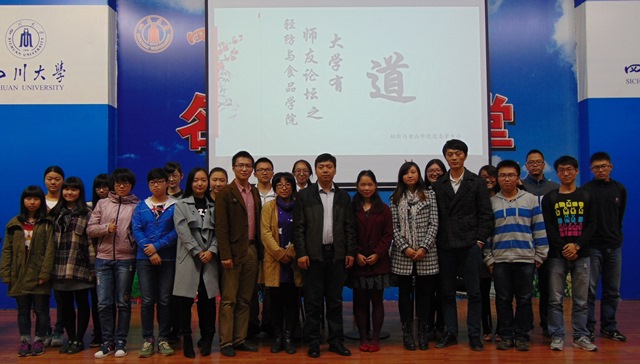 2014年11月2日晚七点,由轻纺与食品学院团委学生会举办的师友论坛之“大学有道”座谈会在四川大学江安校区水上报告厅顺利举行。本次访谈活动邀请了2009级食品科学与工程专业优秀毕业生尹璐、2013级纺织工程硕士研究生董士华、2011级服装设计与工程专业学生孟虎、2011级轻化工程专业学生田赛琦作为访谈嘉宾,bw必威西汉姆联官网团委书记苏德强老师、团委副书记李晓秀老师参加了本次活动,同时参加的还有各学院主席观摩团和bw必威西汉姆联官网部分学生。