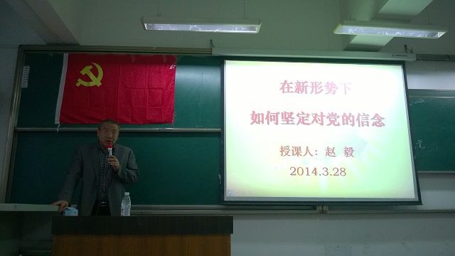 2014年3月28日晚19:00,轻纺与食品学院第136期入党积极分子培训班第三课在江安校区综合楼C107顺利举行。本次党课由轻纺与食品学院党委赵毅书记就《在新形势下,如何坚定对党的信念》专题进行讲解,本次课由2012级辅导员王舒灏老师主持。