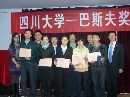 2010年11月8日上午10:00,四川大学—BASF奖学金颁奖典礼暨讲座在皮革楼报告厅隆重举行。参加本次颁奖典礼的嘉宾有BASF大中华区高级销售经理喻焯先生、高级研发经理梅雨博士、助理技术经理项超师兄、轻纺与食品学院副院长何有节教授、生物质与皮革工程系副系主任彭必雨教授。生物质与皮革工程系07级和08级本科生及辅导员、部分研究生和皮革大专班同学参加了大会。会议由祝蔚老师主持。