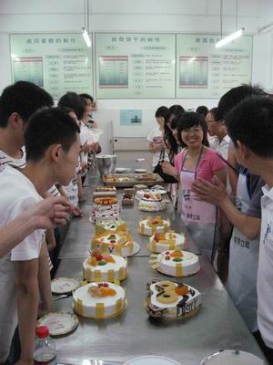 当主持人宣布比赛开始后,各小组成员都迅速动起来。尽管天气较热,但是丝毫没有影响到参赛人员的热情,赛场上,各参赛组人员纷纷拿出看家本领,出尽奇招,经过两个小时的努力,一个个精心设计的精致且具有创意的艺术蛋糕展现在所有人面前,此次蛋糕制作大赛最温馨的画面是每个组除了和自己本组成员交流合作外,组与组之间也有着合作,他们互相使用配料,把自己的材料与其他组分享,体现了友谊第一的精神。