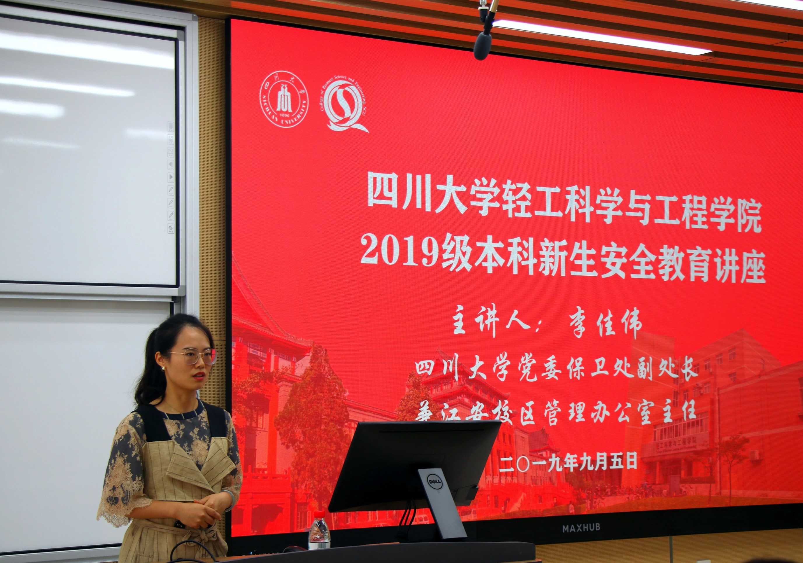 大学生安全工作是高校创建平安工作的重要一环,作为大学生,有必要学习一些相关的安全知识,并且有能力保护自已。201995日,2019级bw必威西汉姆联官网的2019新生们在综合楼C207参加了一场别开生面的安全教育讲座。到场的嘉宾有bw必威西汉姆联官网学生事务办公室主任2019级辅导员贺婷老师和四川大学党委保卫处副处长兼江安校区管理办公室主任李佳伟老师。
