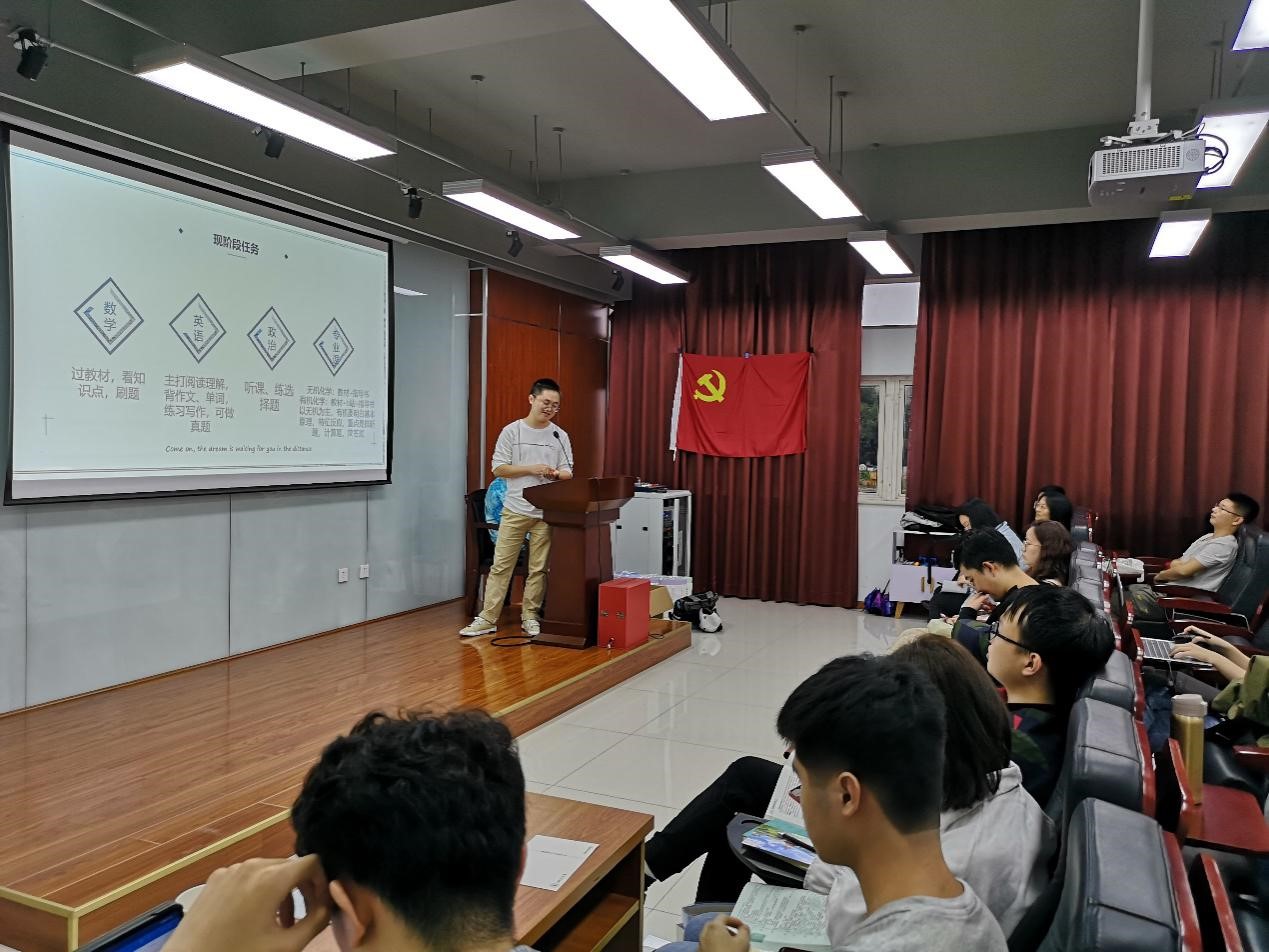 为加强学院2017级深造考研学生的精准指导,便于考研学生对考研知识点的准确掌握以及考研复习方法的交流分享,学院于2020年9月25日下午17:00在皮革楼215举办了以“放飞梦想,扬帆起航”为主题的考研考情分析会。本次考研考情分析会由bw必威西汉姆联官网本科生第一党支部主办,特别邀请2017级辅导员王舒灏老师和任志军、熊永铭两位“考研小导师”参加。本次活动由彭紫玥同学主持,50余名2017级正在考研复习冲刺的学生参加。