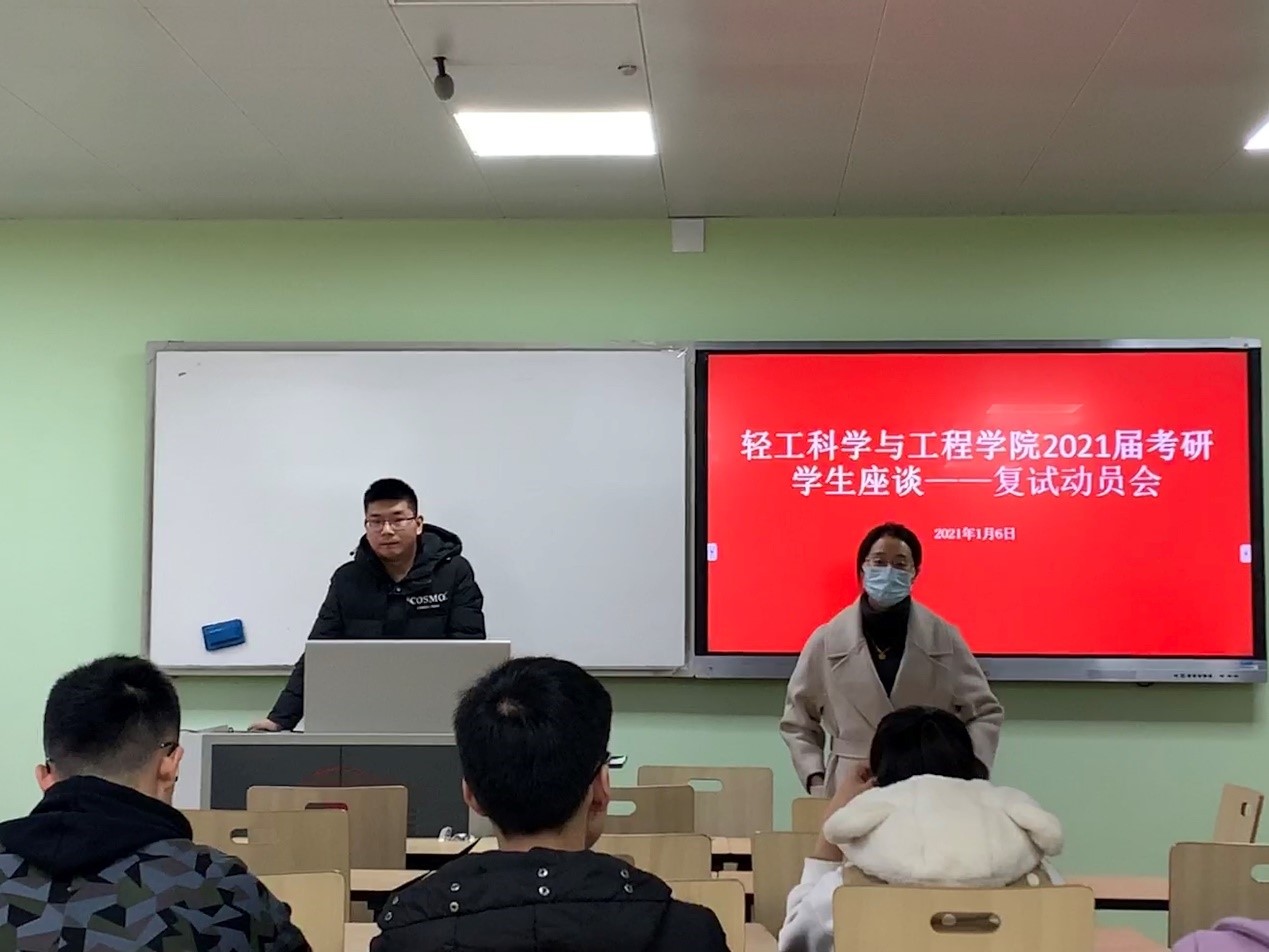 2021年1月6日15:00,bw必威西汉姆联官网2021届考研学生复试动员会在望江校区基础教学楼A511顺利召开。本次复试动员会由2017级辅导员王舒灏老师向考研学生讲解本届考研形势,研究生小导师任志军同学分享复试经验与建议。