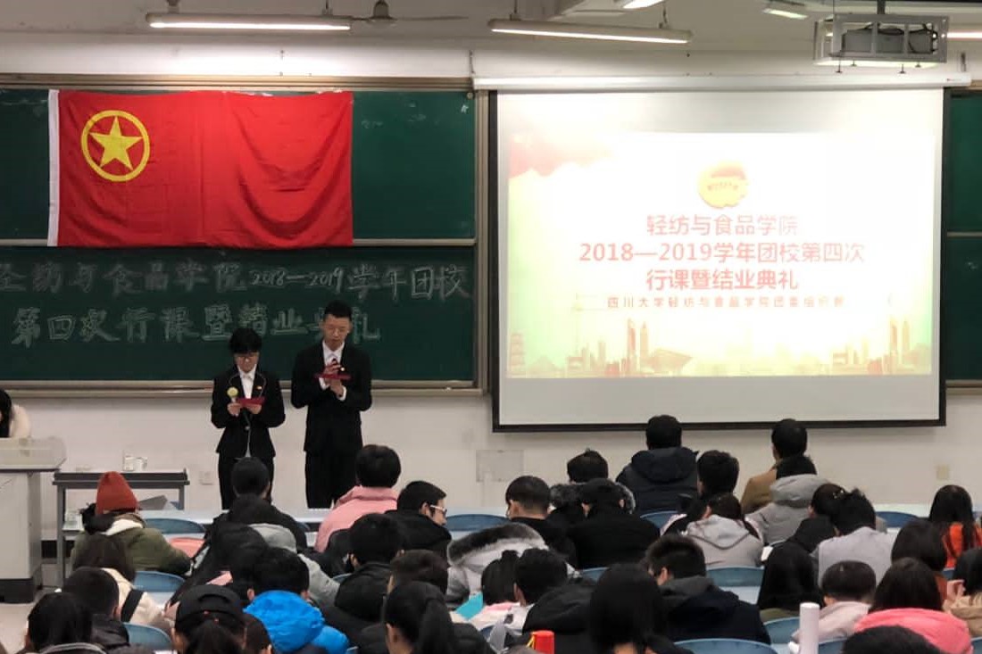 2018121619:00,轻纺与食品学院2018-2019学年团校第四次行课暨结业典礼在四川大学江安校区综合楼C307教室顺利举行。