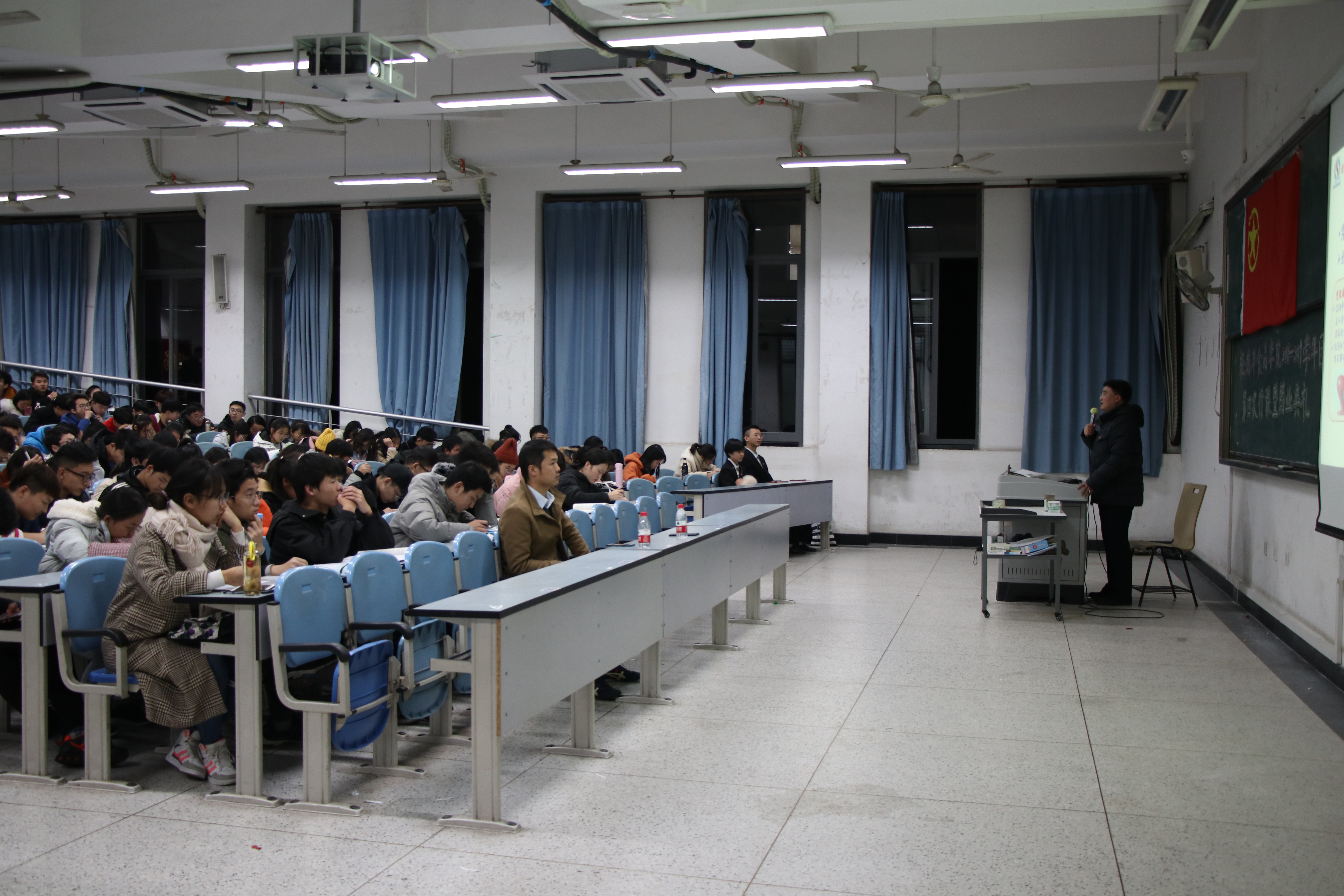 本次团校课程邀请到了轻纺与食品学院党委书记刘晓虎副教授担任主讲嘉宾。学院团委学生会指导老师、2017级辅导员向星烨,学院团委学生会主要学生干部以及学院团校300多名学员在现场聆听了刘书记的精彩授课。