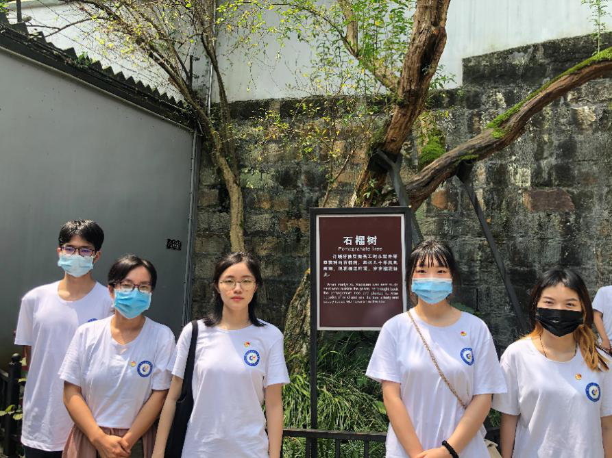 图4 实践团成员在白公馆内许晓轩烈士种下的石榴树前合影
