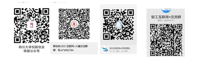 2)四川大学第七届“互联网+”大学生创新创业大赛官方QQ群号:473892784(学生群),228558107(教师群);