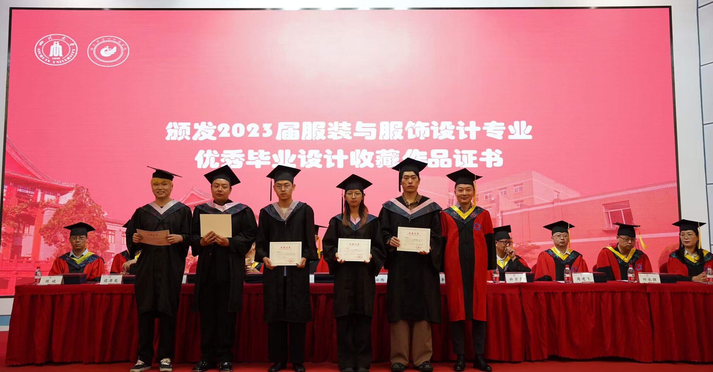 学院党委李天富书记宣读《bw必威西汉姆联官网2023届省优秀毕业生名单》、《2023届毕业生校友工作年级联络人聘任决定》和《2023届优秀毕业设计作品收藏决定》。彭必雨院长、李天富书记、陈意教授分别为四川省优秀毕业生、校友联络人和优秀毕业设计作者颁发证书与聘书。