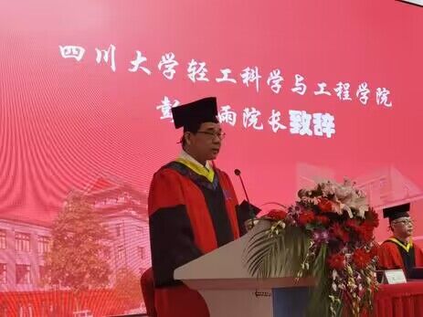 毕业暨授位典礼在庄严的国歌声中正式开始。首先,彭必雨院长代表学院党政致辞。彭院长向2023届圆满完成学业,获得学士、硕士、博士学位的同学们表示最热烈的祝贺!向前来参加毕业典礼的各位领导、教师代表、家长代表表示衷心的感谢!彭院长同与会人员一起回顾了学院近年来在党建工作、学科建设、人才培养等方面取得的成绩。彭院长指出,这些成绩的取得离不开学院全体教师的集体智慧与辛勤工作,离不开学院全体同学的积极配合与全面参与,学院学科与专业的良好发展也定将是提升毕业生学历价值与社会认同的重要平台。过去的成绩永远属于我们每一位轻工人,未来的发展仍需全院师生和轻工校友们的鼎力支持。同时,彭院长向毕业生提出三点希望:第一、志存高远、不忘初心,做一个目标明确与意志坚定的人,志存高远方能登高望远,胸怀天下才可大展宏图。第二、脚踏实地、砥砺奋斗,做一个勤奋务实与追求卓越的人,在最美好的青春年华用奋斗去创造属于自己的最美人生。第三、增强本领、服务行业,做一个常怀感恩与回报社会的人,成就自我、回报社会,真正成为新时代的主人。希望同学们在人生新的征途中,找准定位,抓住机遇,在新的人生征程中创造出无愧于时代的辉煌业绩。