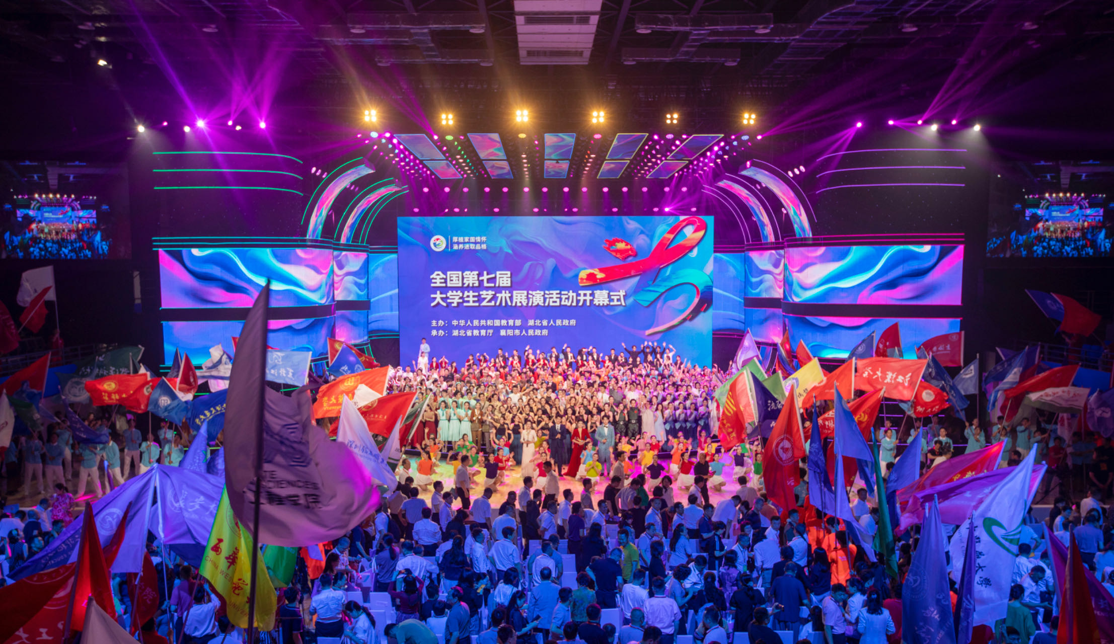 6月12日,由中华人民共和国教育部、湖北省人民政府主办的全国第七届大学生艺术展演活动拉开帷幕。来自全国31个省(区、市)、新疆生产建设兵团和香港特别行政区、澳门特别行政区的7400余名师生齐聚湖北襄阳,围绕“厚植家国情怀·涵养进取品格”主题,以丰富多彩的艺术活动展现高校艺术教育成果和大学生青春风采。