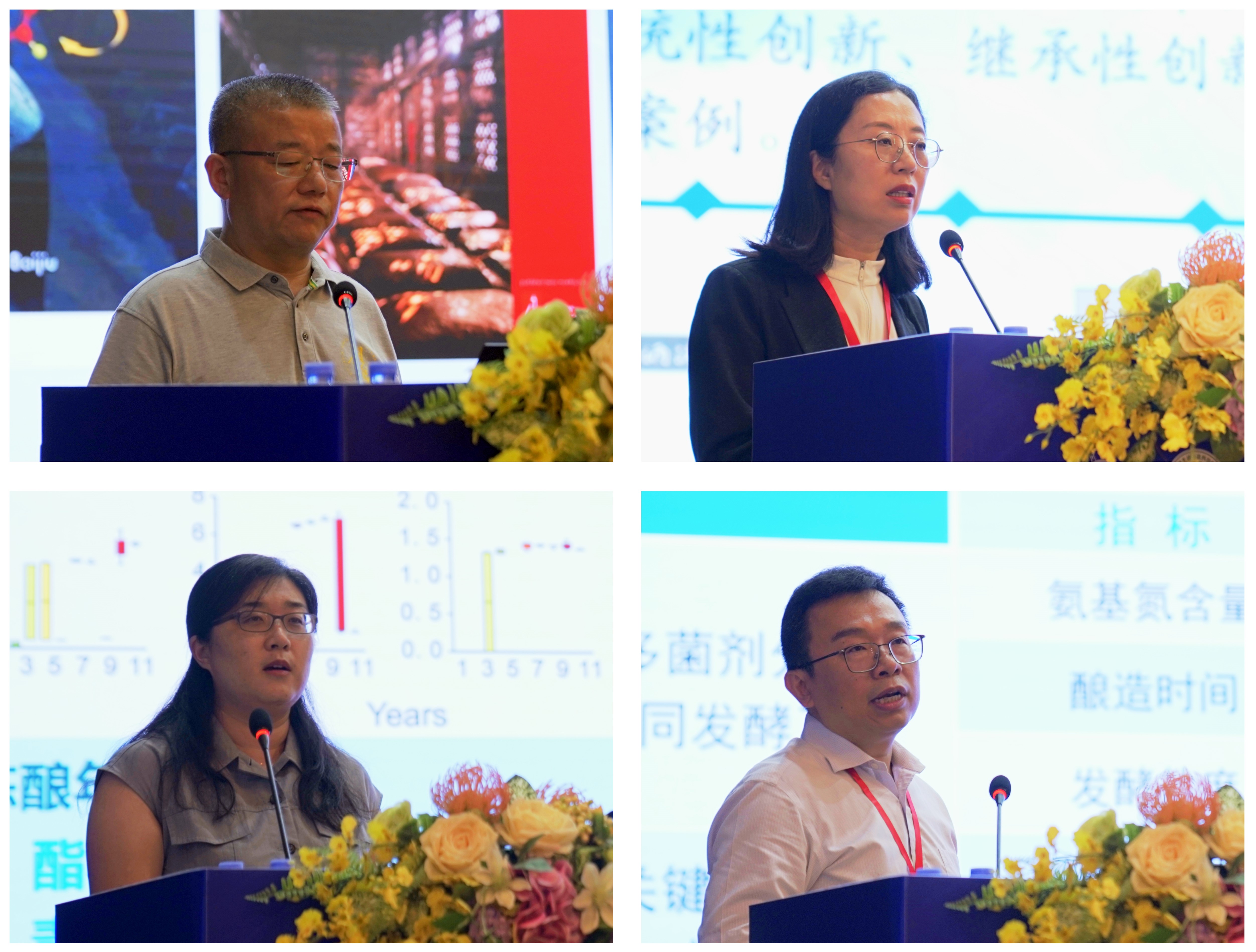 泸州老窖张宿义副总经理、山西汾酒韩英总工程师、江南大学张晓娟教授、四川大学迟原龙教授分别做主题报告