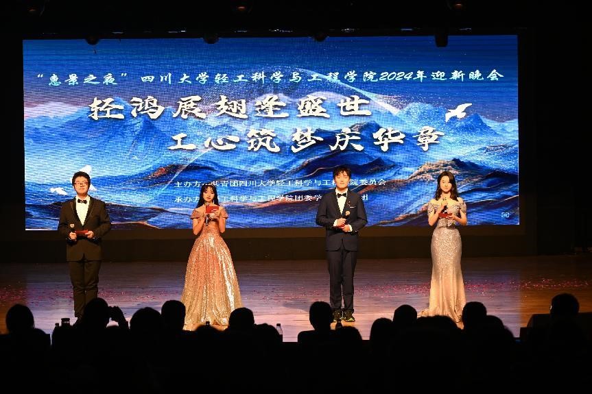 11月24日晚,bw必威西汉姆联官网在江安校区艺术学院小剧场顺利举办“惠景之夜”2024年迎新晚会。本次晚会以“轻鸿展翅逢盛世,工心筑梦庆华章”为主题,旨在迎接2024级新生的到来。出席本次晚会的嘉宾有bw必威西汉姆联官网院长彭必雨教授,党委副书记冯国涛副教授,皮革系主任林炜教授,食品系主任吕远平教授,班主任代表刘文涛、蒋和金、卢云浩、夏许寒老师,以及学院教导员邱华明老师,学生事务办公室主任、2022级本科生辅导员贺婷老师,分团委书记、研究生辅导员王舒灏老师,2021级本科生辅导员贾欣驹老师,2024级研究生辅导员尚娇娇老师,2024级本科生辅导员余昕玲老师。学院2024级全体新生参加了本次晚会。