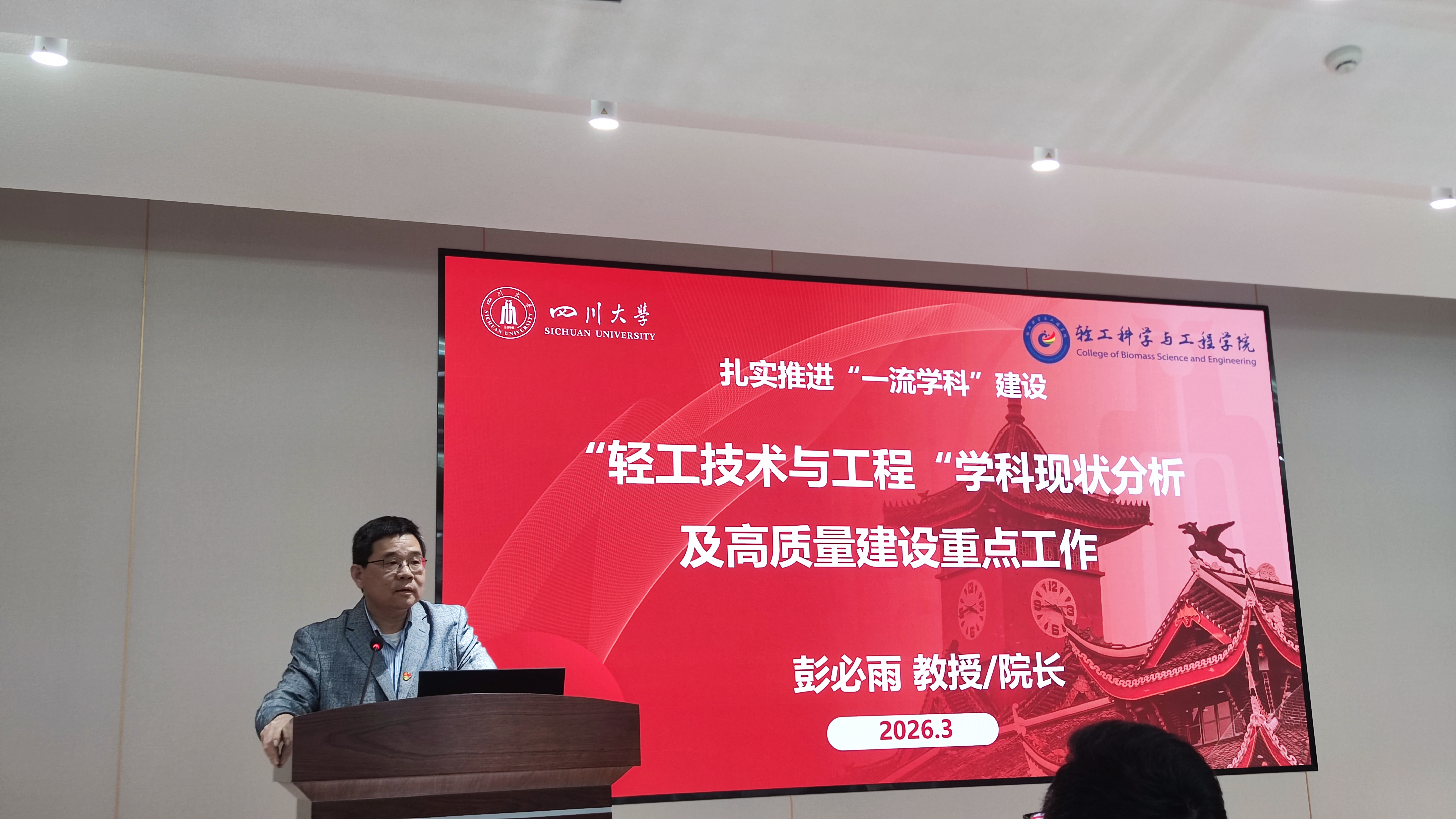 3月20日下午,轻工科学与工程学院在望江校区皮革楼5楼报告厅召开2026年春季新学期工作布置会。学院党委书记李天富主持会议并讲话,学院班子成员、全体教职工参会。
