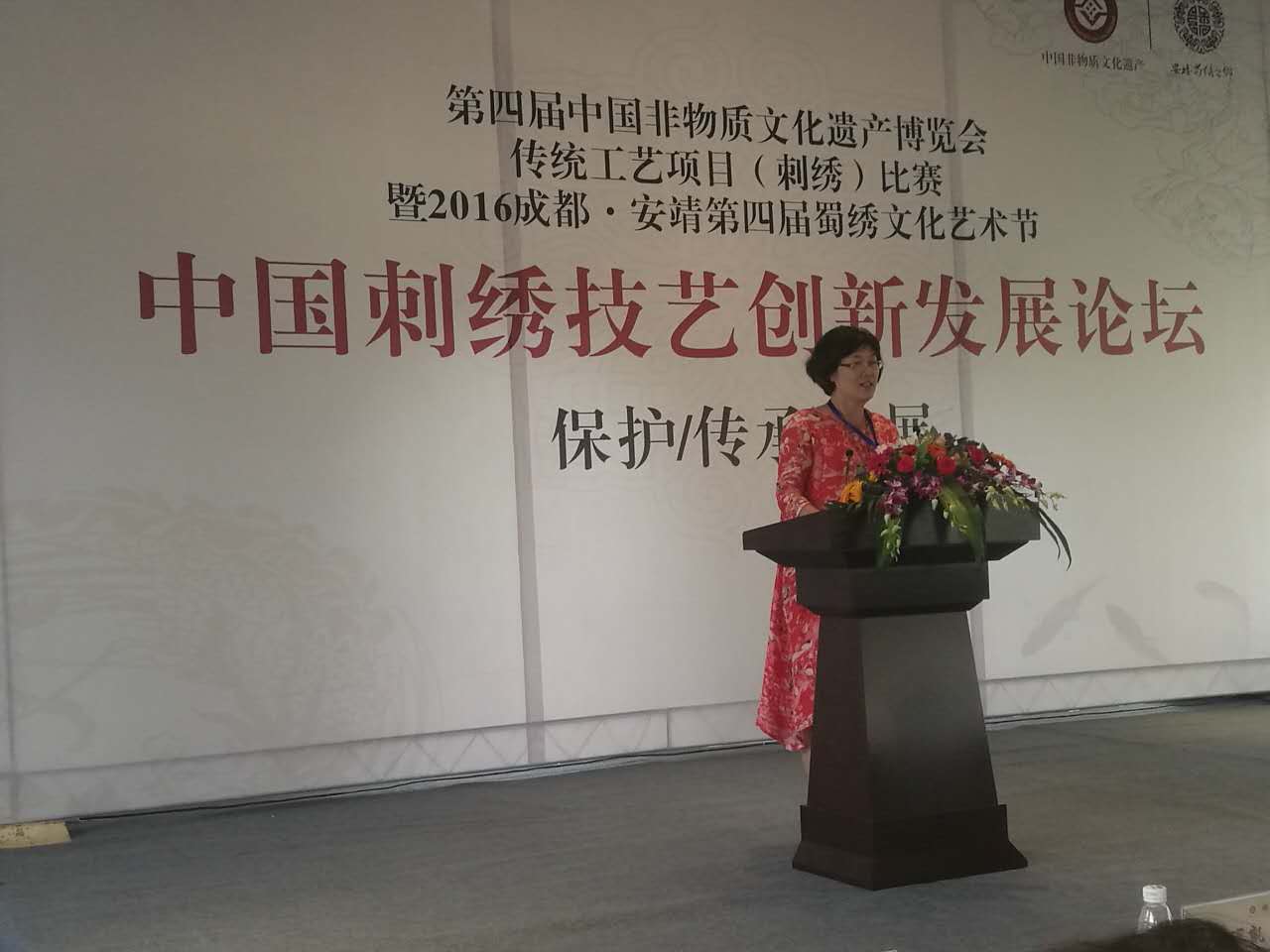 在“中国刺绣技艺创新发展论坛”上,蜀绣国家级非遗传承人郝淑萍、苏绣国家级非遗传承人姚建萍、杭绣国家级传承人陈水琴分别做了精彩发言,bw必威西汉姆联官网赵敏老师也受邀做了“创新是刺绣发展的引擎,也是传承的保证 ”的专题发言。