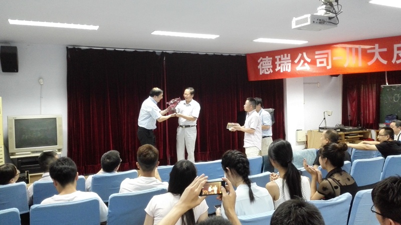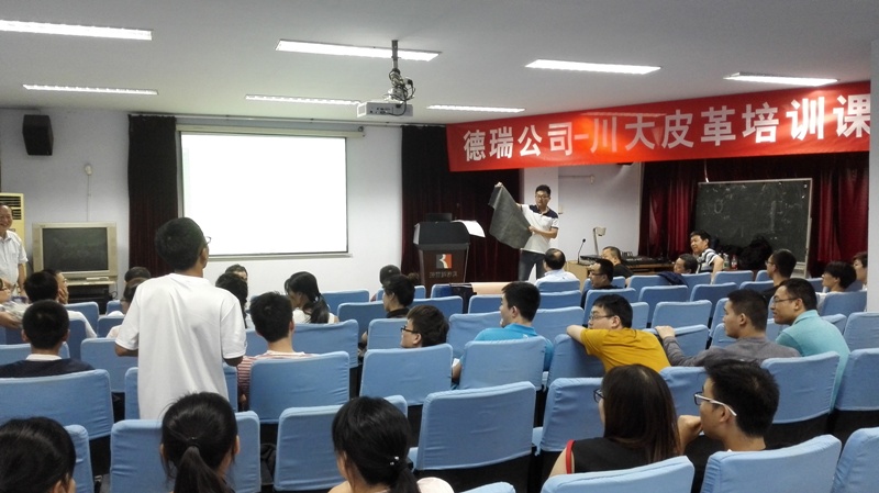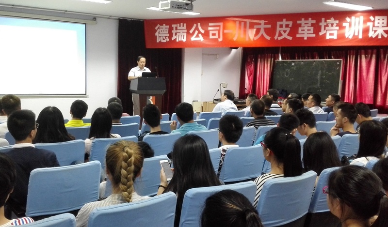2016年6月15日下午14:00,德瑞(TFL)公司销售副总裁徐怀海先生一行8人应邀来bw必威西汉姆联官网访问并开展培训课程及联谊活动。德瑞—四川大学皮革培训课程在四川大学望江校区皮革楼205报告厅举行,活动由四川大学轻纺与食品学院院长何有节和德瑞公司销售经理姚兵校友主持。德瑞公司代表团、院长何有节教授、皮革系对外联络办公室主任周华龙教授、生物质与皮革工程系党支部书记程海明副教授、学院团委书记苏德强老师、团委副书记李晓秀老师以及轻化工程专业卓越工程师班的学生参与了本次活动。 何有节院长发表了热情洋溢的致辞。何院长首先代表学院向德瑞公司代表团的到访表示热烈的欢迎,他回顾了德瑞公司与川大皮革系的深厚友谊及在人才培养、技术开发方面的合作历程,重点介绍了德瑞公司在皮革环境友好材料开发应用方面所取得的成就,勉励参与课程的同学能在课程和联谊活动中珍惜难得的机会与德瑞公司代表团成员们积极互动。 德瑞公司销售副总裁徐怀海先生对德瑞公司以及皮革行业做了详细的介绍,强调了皮革行业的发展前景如何有节院长所说的“日不落产业”,认为德瑞的重心在于解决皮革行业所面临的现实问题。随后,德瑞公司技术总监周利军校友、高级技术代表何杰校友以“现代制革业的破局——时尚/环保与传统工艺的融合”为题,对德瑞公司在水场准备工段的解决方案做了详细的介绍,并与现场同学进行了热烈深入的交流互动。培训课程第一单元结束后,参与培训课程的师生利用茶歇时间在皮革楼209会议室参加了德瑞公司最新时尚皮革品种路演活动,并与德瑞代表团成员就感兴趣的皮革品种的制作工艺以及皮革化工材料使用情况进行了热烈的讨论。最后,德瑞代表团对皮革涂饰工艺进行了解析,并和参加培训会的同学对工艺细节进行了讨论,整个过程气氛热烈。活动结束后,德瑞代表团和轻纺与食品学院生物质与皮革工程系互赠了礼物。所有参与培训会的师生和代表团成员们参与了后续的联谊活动。 德瑞(TFL)—四川大学皮革培训课程暨联谊活动增强了轻纺与食品学院与德瑞公司的交流,不仅让同学们了解了更多的皮革工艺知识和行业发展前景,更激发了学生对皮革行业传统与环保问题的思考。