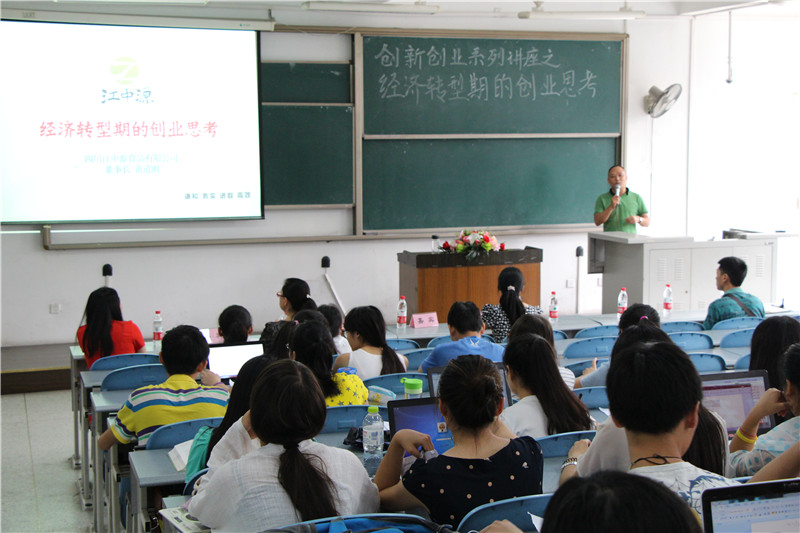 2015年7月16日10:00,bw必威西汉姆联官网食品科学与工程专业2015年国际教学周暨卓越工程师系列讲座之“经济转型期的创业思考”在四川大学江安校区综合楼C座106教室顺利举行。本次讲座由bw必威西汉姆联官网食品工程系与bw必威西汉姆联官网团委学生会联合主办,并邀请了四川江中源食品有限公司董事长黄道刚先生作为主讲嘉宾。本次讲座嘉宾还有黄道刚先生的盈棚管理团队,bw必威西汉姆联官网食品工程副系主任贾利蓉副教授,bw必威西汉姆联官网食品工程系何贵萍老师。首先,贾利蓉副教授为本次讲座致开场辞。接着黄道刚先生则以“梦想”为话题引入自己的人生经历,为何会选择进入食品行业,从创业最初到至今,黄先生明确指出做事贵在坚持。在讲到食品行业的变迁时,他提到自己企业也经历过两次比较大的转折,并为大家讲述了自己如何去寻找、发展商机。同时黄先生也指出未来食品行业发展食品安全、食品品质研发是重点,在演讲的最后他也分析了时代变迁过程中创业环境的变化。黄先生的奋斗、拼搏的精神,幽默风趣的语调,毫无保留的分享,赢得了同学们的热烈掌声。讲座最后,由贾利蓉副教授对本次讲座进行总结,并对同学们给予了中肯的建议与美好的祝福。本次讲座同学们都理解了脚踏实地和坚持的意义,也让同学们明白了交流沟通的重要性,令同学们获益匪浅。