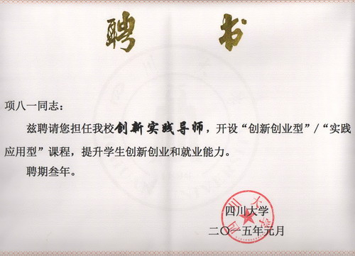 2015年3月18日,由轻纺与食品学院食品工程系邀请校外专家开设的《食品标准及质量控制》课程正式开课。这门课属于实践应用型课程,面向全校本科2011级和2012级学生,开课时间:3-10周周三1-2节,地点:望江基础教学楼C座C102,主讲人是成都市标准化研究院副院长项八一老师。上课铃一响,食品工程系副系主任贾利蓉老师向我们简单介绍了项八一老师,并代表四川大学为项老师颁发“四川大学创新实践导师”聘书。项老师虚心接过聘书后就正式投入到课程当中。课程中,项老师提到,无论什么行业,都是需要标准的。“没有规矩,不成方圆”,这个“规矩”就是标准,而这个“方圆”就是我们要求的质量。没有标准,就没有质量。项老师在授课过程中,结合亲身经历和对企业的了解,为大家呈现出一个个引人入胜的例子,让同学们在事例中了解标准和质量。项老师也抛出一个个问题去引发同学们积极思考,同时引导大家为未来做打算。课程中同学们积极与项老师互动。课程结束后,大家以热烈的掌声感谢项八一老师。