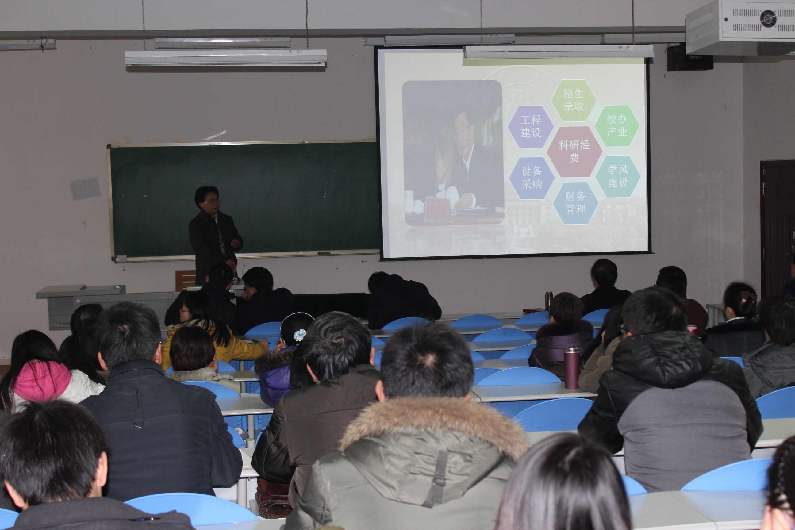 2012年12月28日(周五)下午3点,学校纪委副书记兼纪委办公室主任张学龙同志受邀在纺工附楼205室向全院教师和学生代表做了题为“科研经费管理及使用形势政策”的宣讲报告。报告会由何有节院长主持开场。随后张学龙同志从当前科研经费的管理及使用所面临的形势入题,剖析了教育系统以往查处的与科研经费管理及使用相关的典型案例,列举了科研经费管理及使用中可能存在的违规现象,细致解读了当前可能存在的认识误区,并提出对科研经费及使用的形势判断,最后就如何规范管理及使用科研经费分享了个人的体会和建议。本次专题宣讲报告会进一步巩固了全院师生规范管理及使用科研经费的意识,夯实了师生在廉洁风险防控方面的思想基础,为学院科学、健康发展起到了重要的推动作用。