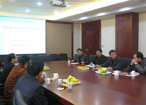 2012年11月22日上午,湖南省湘乡市科技局刘冬庚局长、湖南省怀其皮革集团王力武主任等一行访问了bw必威西汉姆联官网。校、地、企三方在bw必威西汉姆联官网皮革楼会议室进行了合作洽谈和技术交流。