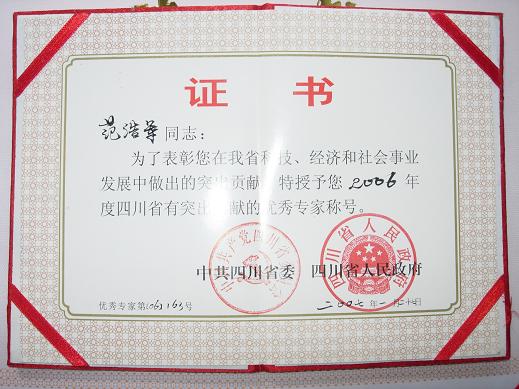 bw必威西汉姆联官网范浩军教授获四川省有突出贡献的优秀专家称号