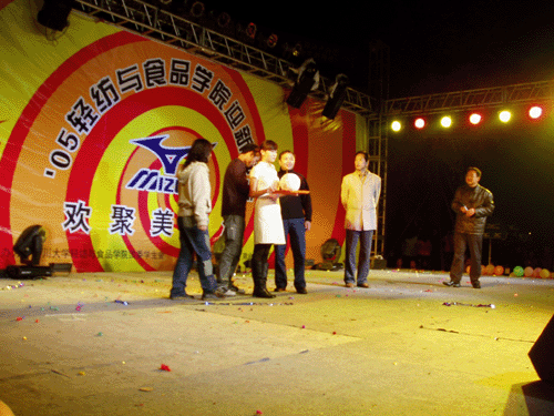 晚会结束后,学院领导和老师与演员、工作人员握手致谢并留影。本次晚会了充分体现了学院的特色,进一步检验了轻纺与食品学院在学生校园文化建设方面的工作开展,充分展示了全院学生良好的精神风貌,增强了2005级新生对学院、专业的认同感和归属感,为随后的专业教育打下良好的基础。(后附晚会节目单及部分图片,晚会现场录像将经整理后上挂学院主页供学院师生下载观看)