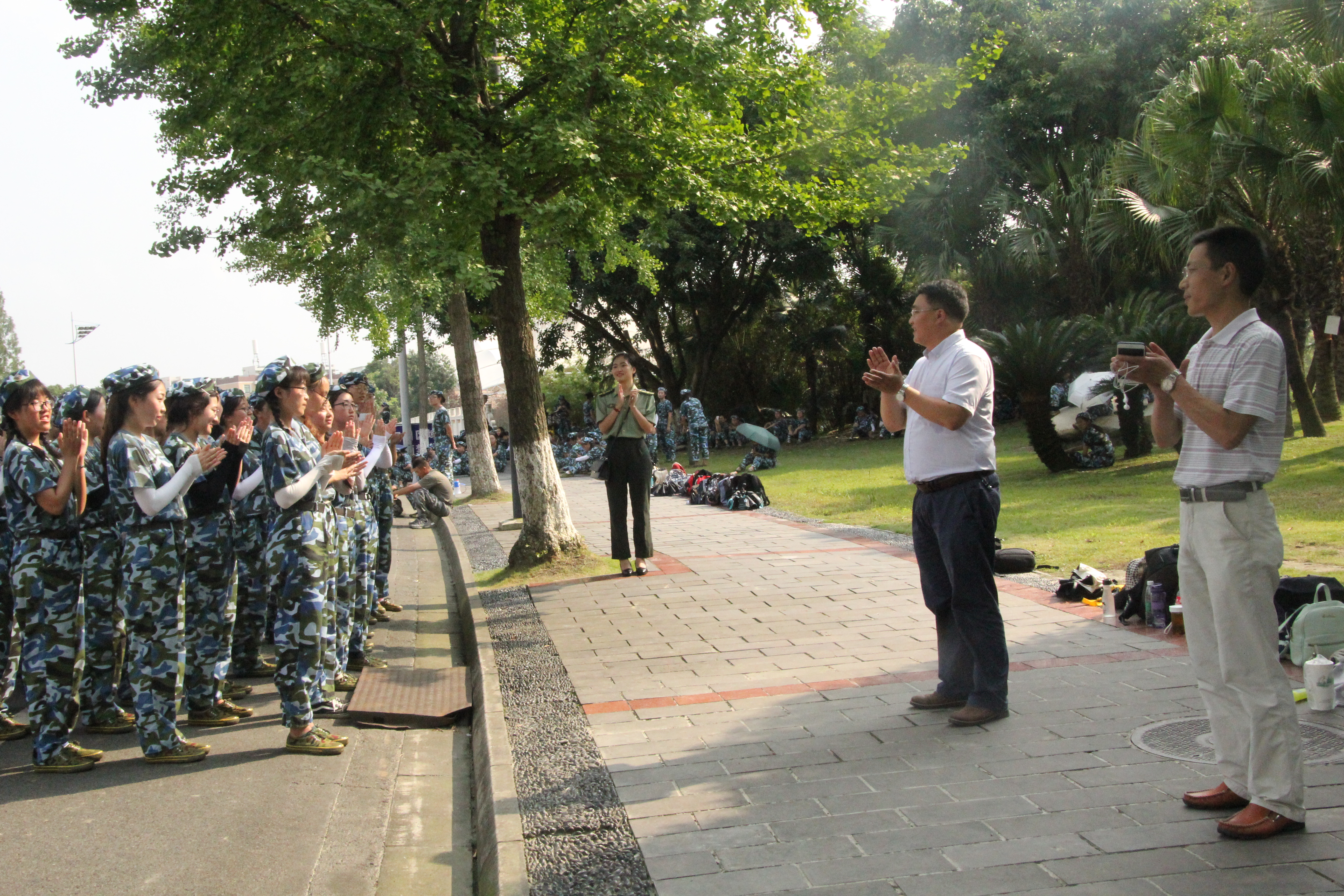 2018718日下午,轻纺与食品学院党政领导一行前往四川大学江安校区,看望和慰问承担学院2017级军训任务的全体教官及全体参训学生。参与慰问的领导有,轻纺与食品学院党委书记刘晓虎副教授、党委副书记冯国涛老师,同时,2016级辅导员王舒灏老师、2017级辅导员李杨老师也参与了本次慰问。